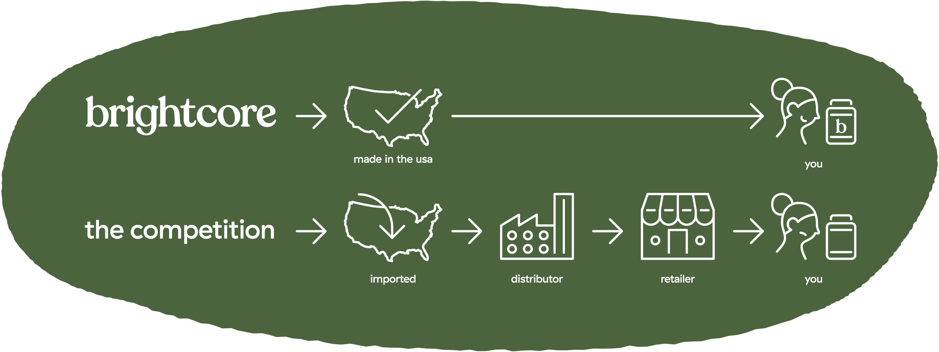 We cut those guys out of the equation so that we could source the most effective, efficient ingredients out there for every Brightcore product but then offer them to you at a price that’s easy to swallow.